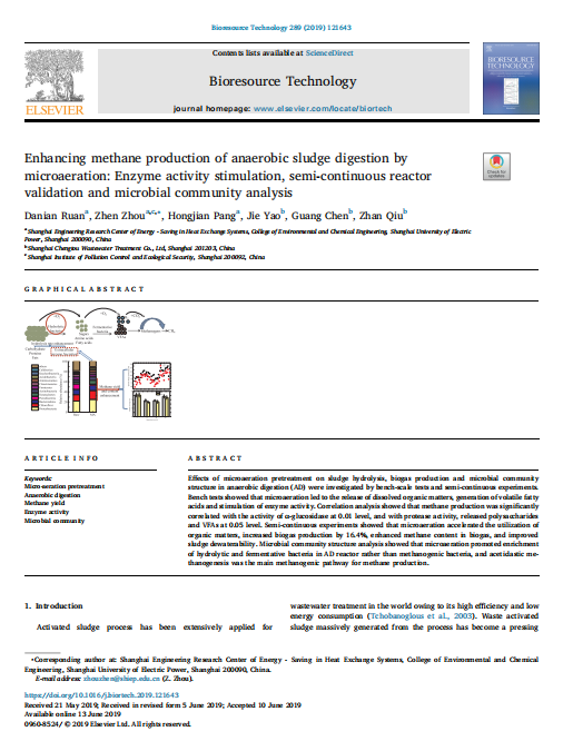 【文獻標題】Enhancing methane production of anaerobic sludge digestion by microaeration: Enzyme activity stimulation, semi-continuous reactor validation and microbial community analysis