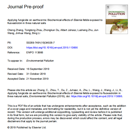【文獻(xiàn)標(biāo)題】Applying fungicide on earthworms: Biochemical effects of Eisenia fetida exposed to fluoxastrobin in three natural soils