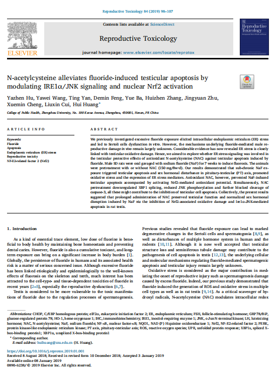 【文獻(xiàn)標(biāo)題】N-acetylcysteine alleviates fluoride-induced testicular apoptosis by modulating IRE1α/JNK signaling and nuclear Nrf2 activation