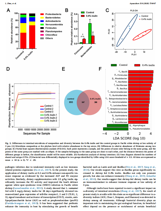 【關(guān)鍵詞】Low salinity,Inulin,Growth performance,Antioxidant capacity,Intestinal microbiota,Litopenaeus vannamei