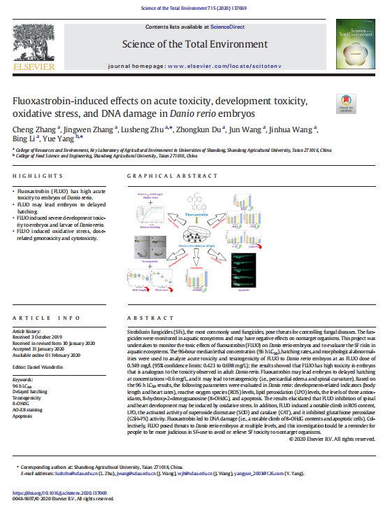 【文獻標題】Fluoxastrobin-induced effects on acute toxicity, development toxicity,oxidative stress, and DNA damage in Danio rerio embryos