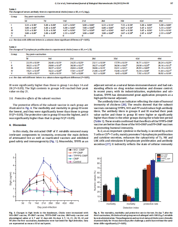 【文獻(xiàn)標(biāo)題】Effects of Taishan Pinus massoniana pollen polysaccharide on the subunit vaccine of Proteus mirabilis in birds