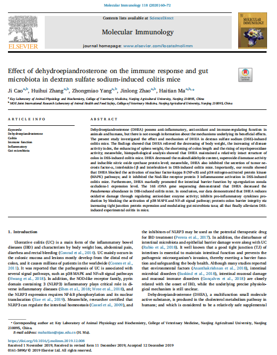 【關(guān)鍵詞】Dehydroepiandrosterone,Colitis,Immune function,Inflammatory,Gut microbiota