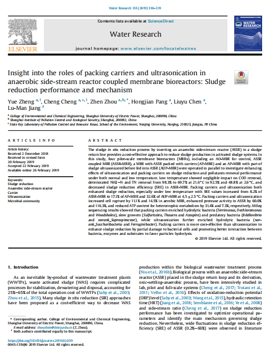 【文獻(xiàn)標(biāo)題】Insight into the roles of packing carriers and ultrasonication in anaerobic side-stream reactor coupled membrane bioreactors: Sludge reduction performance and mechanism
