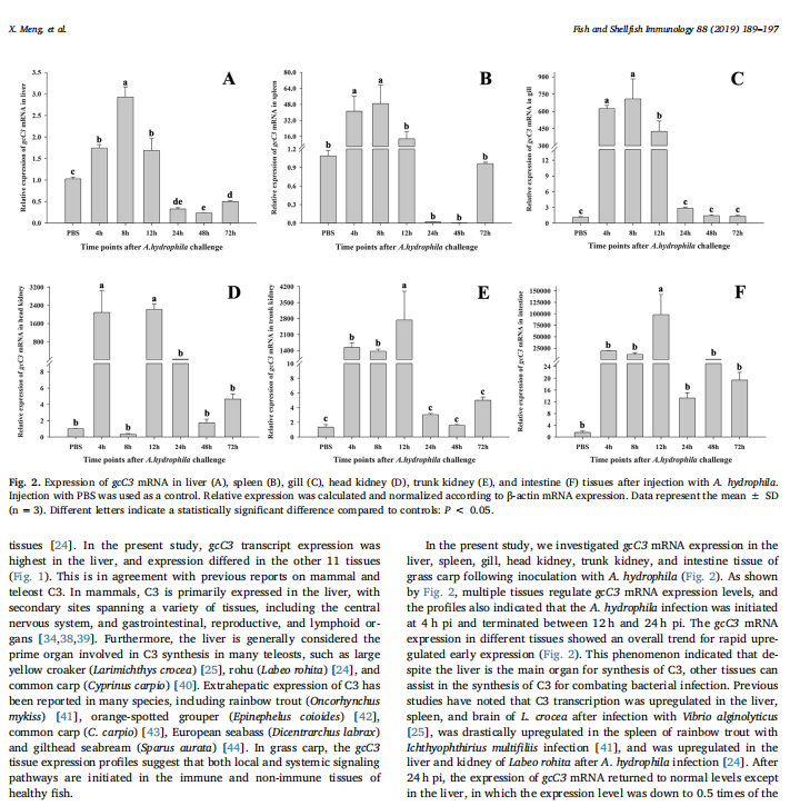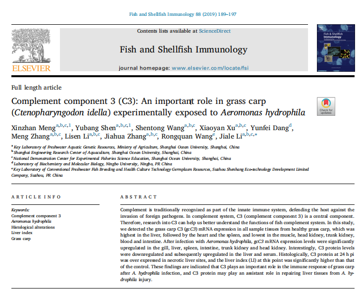 【文獻標題】Complement component 3 (C3): An important role in grass carp (Ctenopharyngodon idella) experimentally exposed to Aeromonas hydrophila
