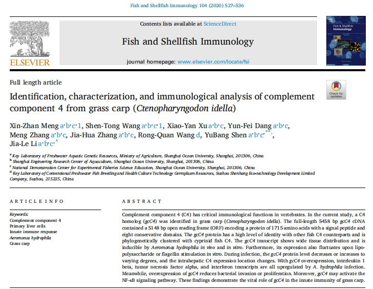 【出版期刊】《Fish and Shellfish Immunology》