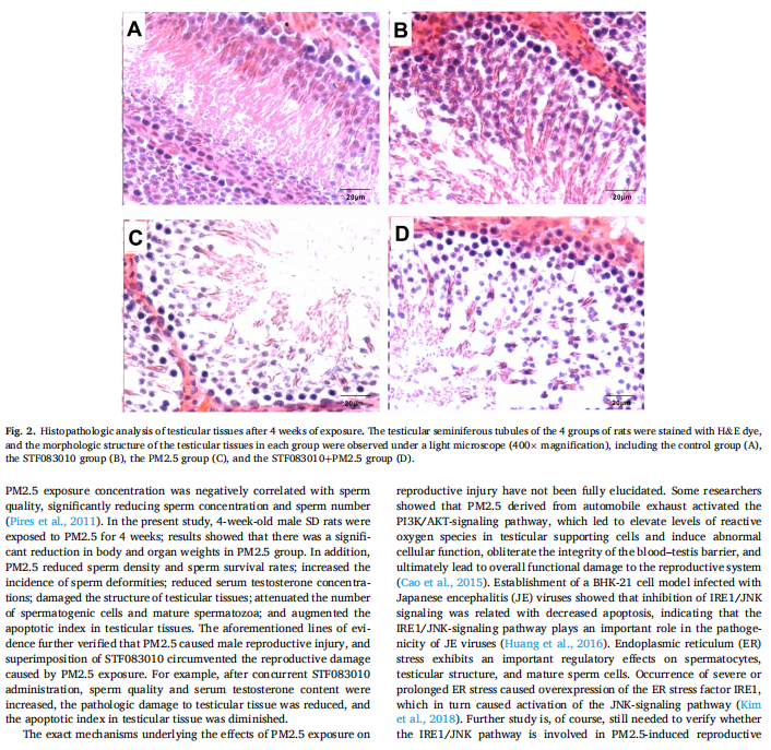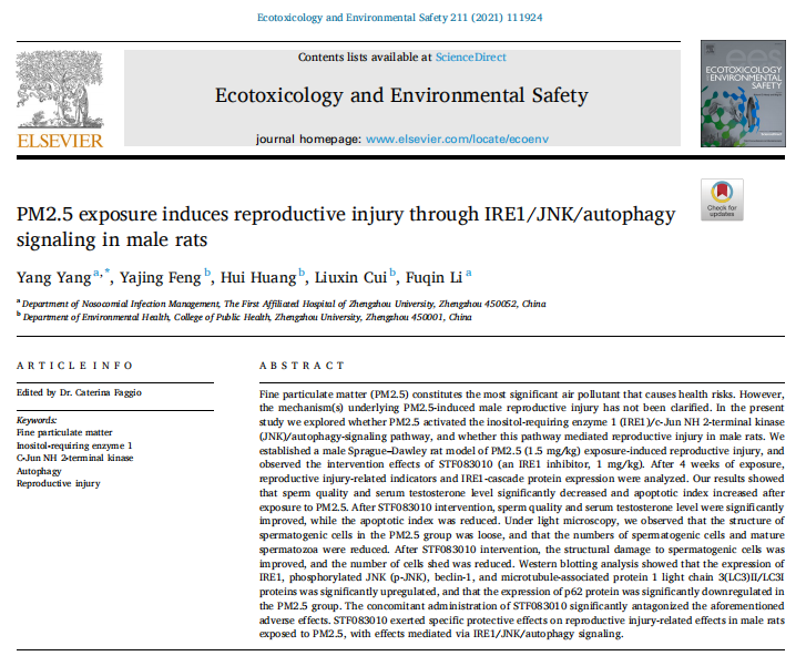 【文獻(xiàn)標(biāo)題】PM2.5 exposure induces reproductive injury through IRE1/JNK/autophagy signaling in male rats