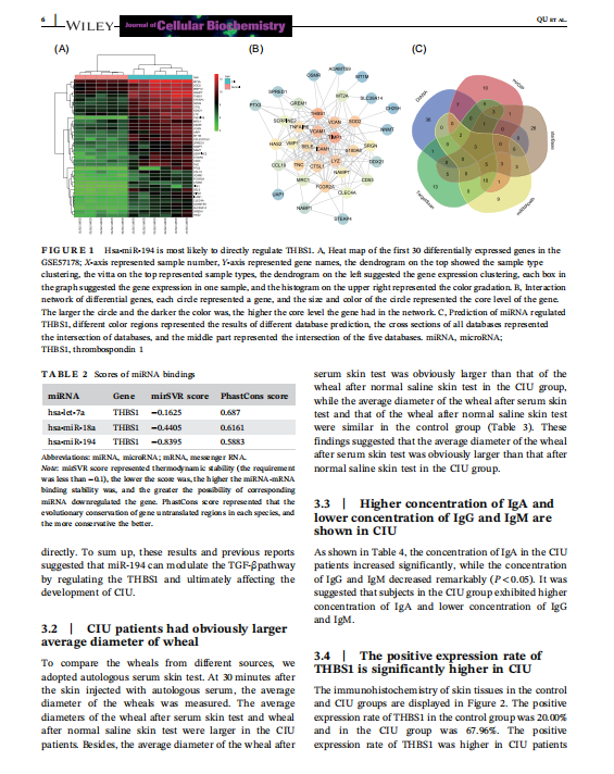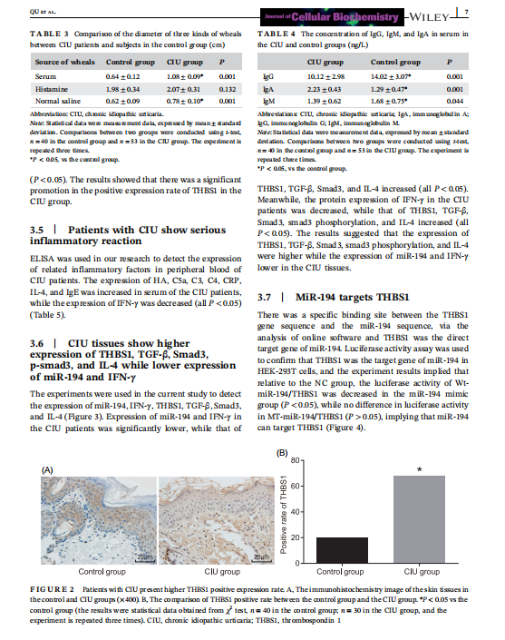 【關(guān)鍵詞】chronic idiopathic urticaria, human dermal microvascular endothelial cells permeability,inflammatory response, mast cells, mircoRNA‐194, TGF‐β/SMAD pathway, thrombospondin