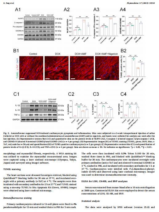 【文獻(xiàn)標(biāo)題】Amentoflavone mitigates doxorubicin-induced cardiotoxicity by suppressing cardiomyocyte pyroptosis and inflammation through inhibition of the STING/NLRP3 signalling pathway