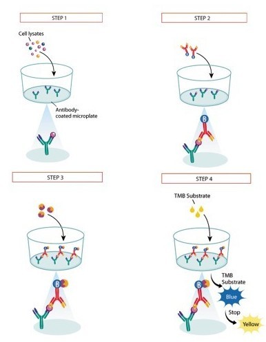 結(jié)合在固相載體表面的抗原或抗體與受檢標(biāo)本(抗原或抗體)起反應(yīng)。用洗滌的方法洗去未結(jié)合的抗原或抗體。再加入酶標(biāo)記的抗原或抗體,也通過反應(yīng)而結(jié)合在固相載體上。此時(shí)固相上的酶量與標(biāo)本中受檢物質(zhì)的量呈一定的比例。加入酶反應(yīng)的底物后,底物被酶催化成為有色產(chǎn)物,產(chǎn)物的量與標(biāo)本中受檢物質(zhì)的量直接相關(guān),根據(jù)呈色的深淺進(jìn)行定性或定量分析。根據(jù)實(shí)際的應(yīng)用方法,可以分成以下幾種: