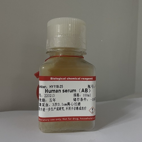 人AB血清:收集的血液均在冷藏條件下處理。血清和凝塊分離后立即將血清合并并冷凍。只有符合我們的檢測標準的血清才被接受作進一步處理。